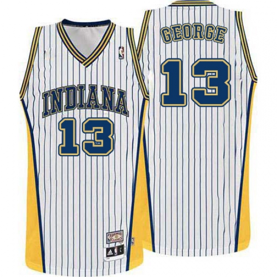 Home>NBA>Indiana Pacers>Paul George>Men's Adidas Indiana Pacers #13 Paul George Authentic White Throwback NBA Jersey