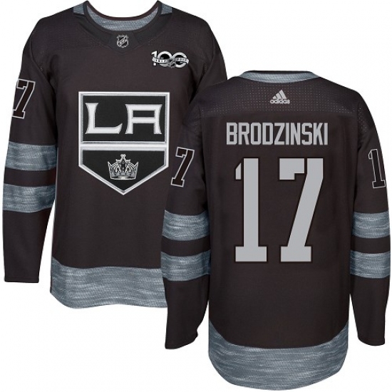 Home>NHL>Los Angeles Kings>Jonny Brodzinski>Men's Adidas Los Angeles Kings #17 Jonny Brodzinski Premier Black 1917-2017 100th Anniversary NHL Jersey