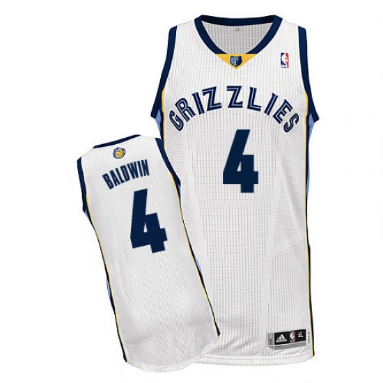Men's Adidas Memphis Grizzlies #4 Wade Baldwin Authentic White Home NBA Jersey
