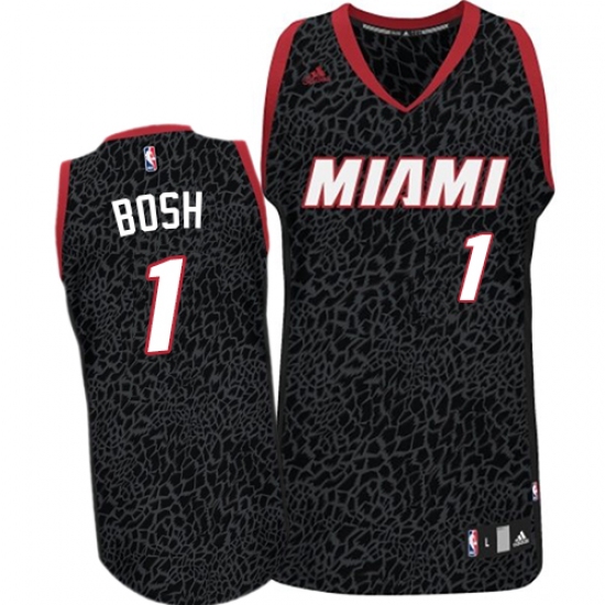 Men's Adidas Miami Heat #1 Chris Bosh Authentic Black Crazy Light NBA Jersey