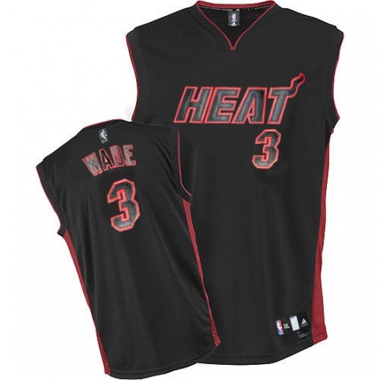 Men's Adidas Miami Heat #3 Dwyane Wade Authentic Black Black/Red No. NBA Jersey