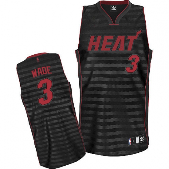 Men's Adidas Miami Heat #3 Dwyane Wade Authentic Black/Grey Groove NBA Jersey