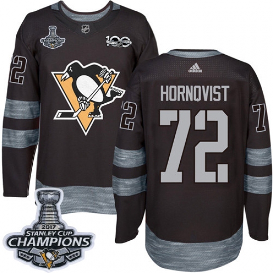 Men's Adidas Pittsburgh Penguins #72 Patric Hornqvist Premier Black 1917-2017 100th Anniversary 2017 Stanley Cup Champions NHL Jersey