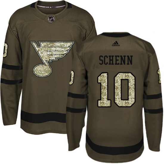 Home>NHL>St. Louis Blues>Brayden Schenn>Men's Adidas St. Louis Blues #10 Brayden Schenn Premier Green Salute to Service NHL Jersey