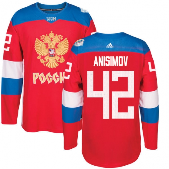 Home>NHL>Team Russia>Artem Anisimov>Men's Adidas Team Russia #42 Artem Anisimov Premier Red Away 2016 World Cup of Hockey Jersey
