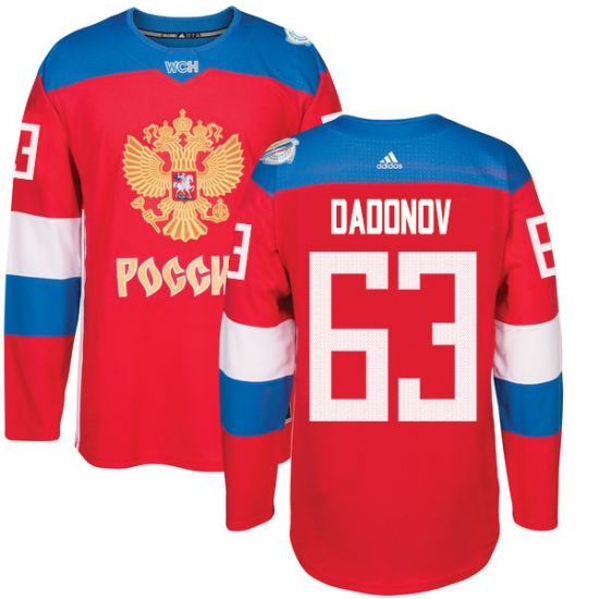 Home>NHL>Team Russia>Evgenii Dadonov>Men's Adidas Team Russia #63 Evgenii Dadonov Authentic Red Away 2016 World Cup of Hockey Jersey