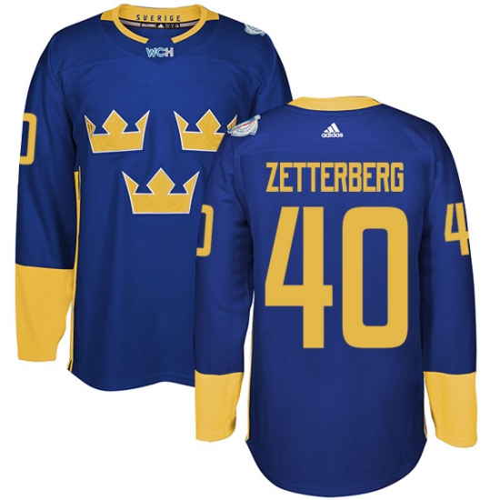 Home>NHL>Team Sweden>Henrik Zetterberg>Men's Adidas Team Sweden #40 Henrik Zetterberg Authentic Royal Blue Away 2016 World Cup of Hockey Jersey