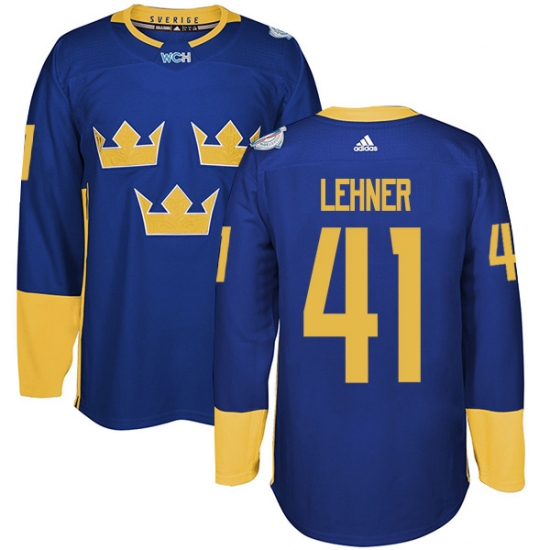 Men's Adidas Team Sweden #41 Robin Lehner Authentic Royal Blue Away 2016 World Cup of Hockey Jersey