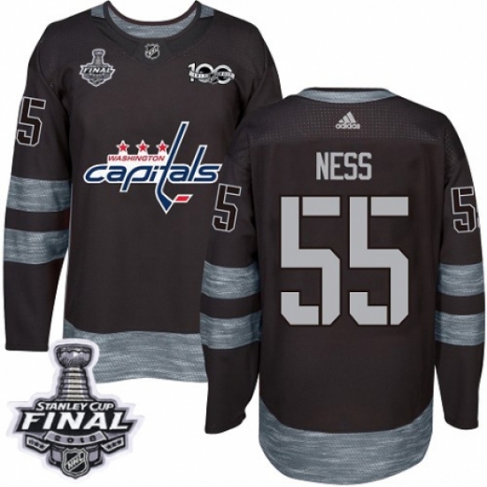 Men's Adidas Washington Capitals #55 Aaron Ness Authentic Black 1917-2017 100th Anniversary 2018 Stanley Cup Final NHL Jersey