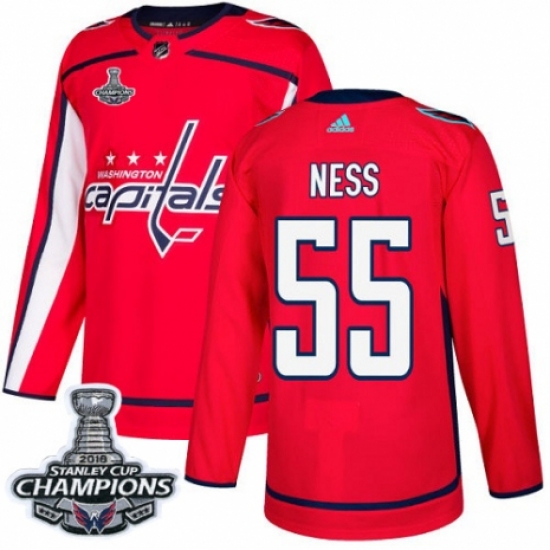 Men's Adidas Washington Capitals #55 Aaron Ness Authentic Red Home 2018 Stanley Cup Final Champions NHL Jersey