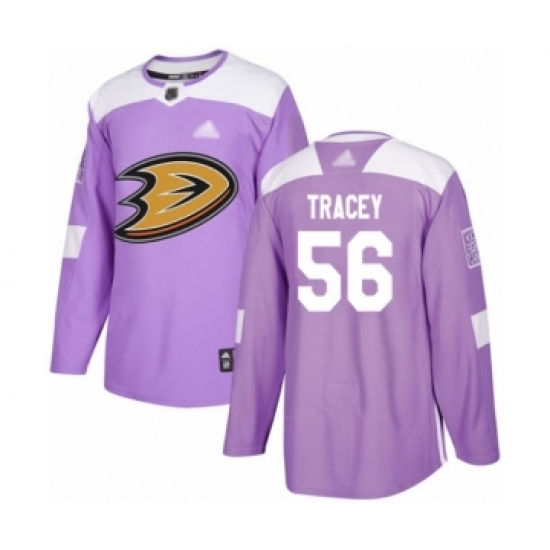 >Men's Anaheim Ducks #56 Brayden Tracey Authentic Purple Fights Cancer Practice Hockey Jersey