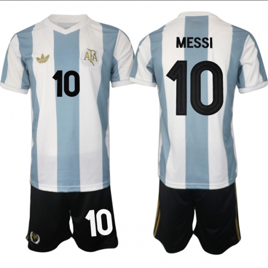 >Men's Argentina #10 Lionel Messi White Blue 2025 Home Soccer Jersey Suit