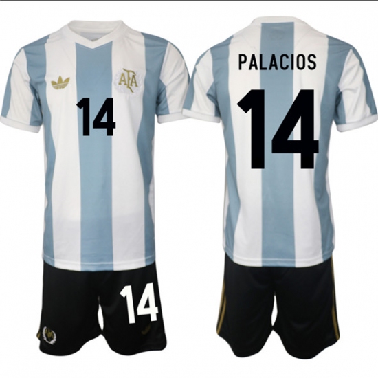 Men's Argentina #14 Palacos White Blue 2024-25 50th Anniversary Home Soccer Jersey Suit