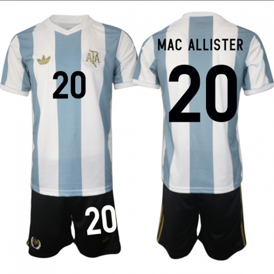 >Men's Argentina #20 Alexis Mac Allister White Blue 2024-25 50th Anniversary Home Soccer Jersey Suit