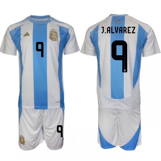 Men's Argentina #9 Julián Alvarez White Blue 2024-25 50th Anniversary Home Soccer Jersey Suit