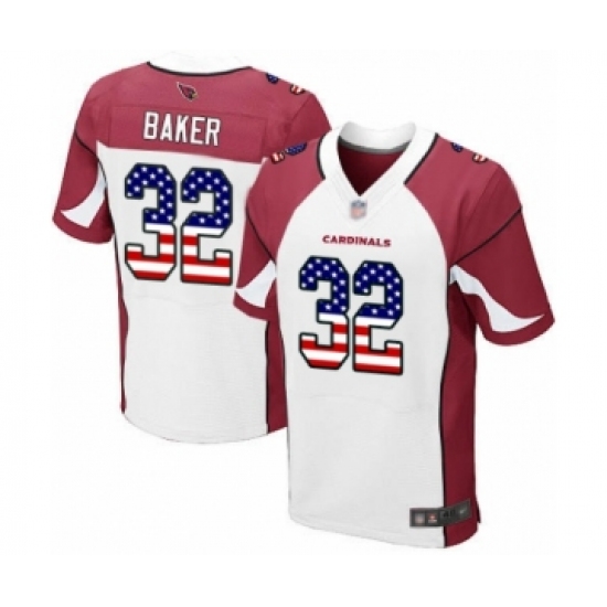 Men's Arizona Cardinals #32 Budda Baker Elite White Road USA Flag Fashion Football Jersey