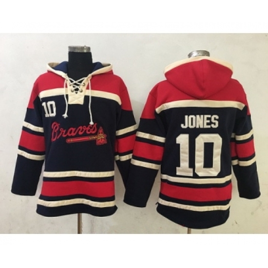>Men's Atlanta Braves #10 Chipper Jones Retired Navy Blue Stitched MLB Baseball Hoodie