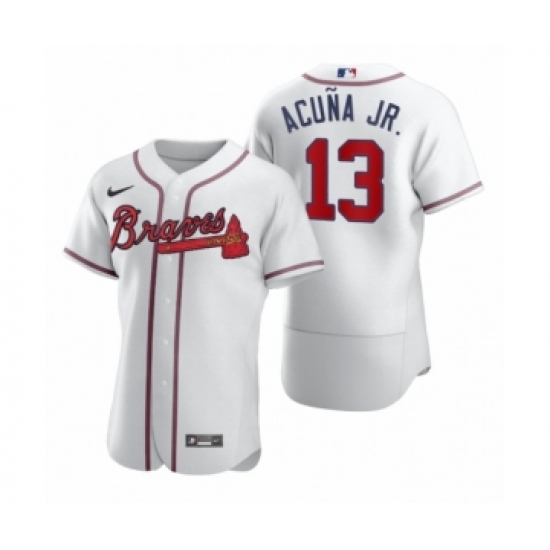 Men's Nike Atlanta Braves #13 Ronald Acuna Jr. White Stitched Baseball Jersey