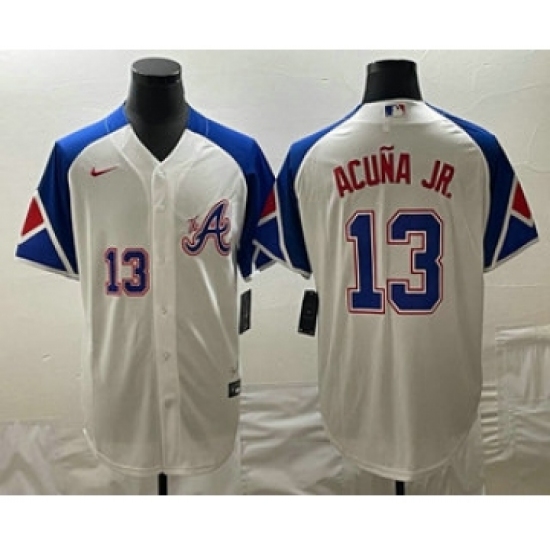 Men's Atlanta Braves #13 Ronald Acuña Jr. White 2023 City Connect Flex Base Stitched Jersey