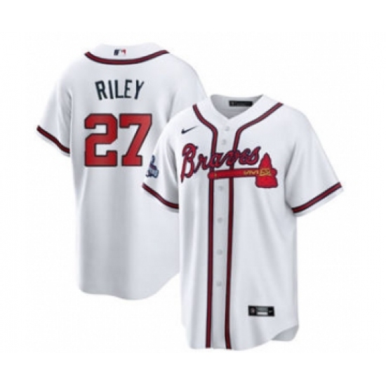 Men's Atlanta Braves #27 Austin Riley 2021 White World Series Champions Cool Base Stitched Jersey