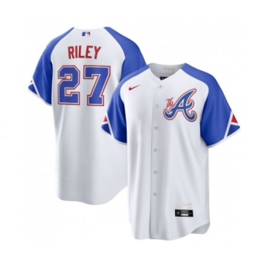 Men's Atlanta Braves #27 Austin Riley White 2023 City Connect Cool Base Stitched Baseball Jersey