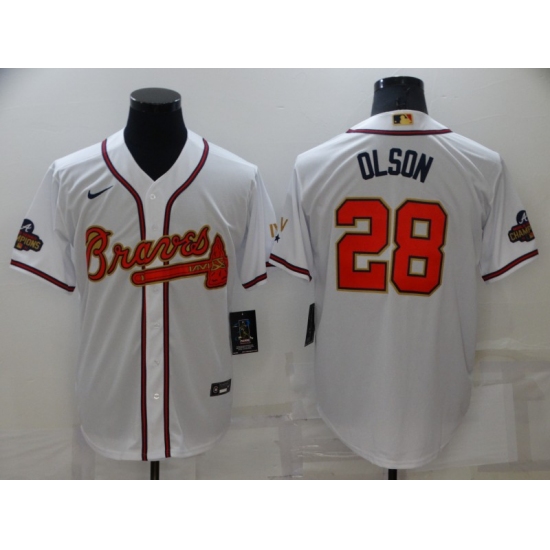 Men's Atlanta Braves #28 Matt Olson Number White Cool Base Stitched Baseball Jersey