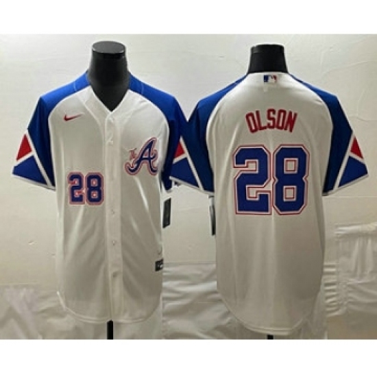 Men's Atlanta Braves #28 Matt Olson White 2023 City Connect Flex Base Stitched Baseball Jersey