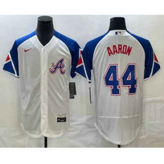 >Men's Atlanta Braves #44 Hank Aaron White 2023 City Connect Flex Base Stitched Jersey