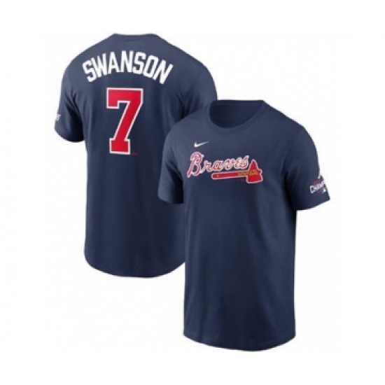 >Men's Atlanta Braves #7 Dansby Swanson 2021 Navy World Series Champions Player Name & Number T-Shirt