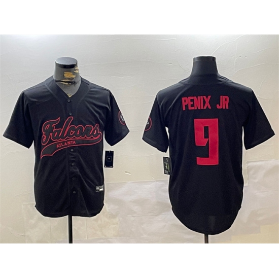 >Men's Atlanta Falcons #9 Michael Penix Jr. Black With Cool Base Stitched Baseball Jersey