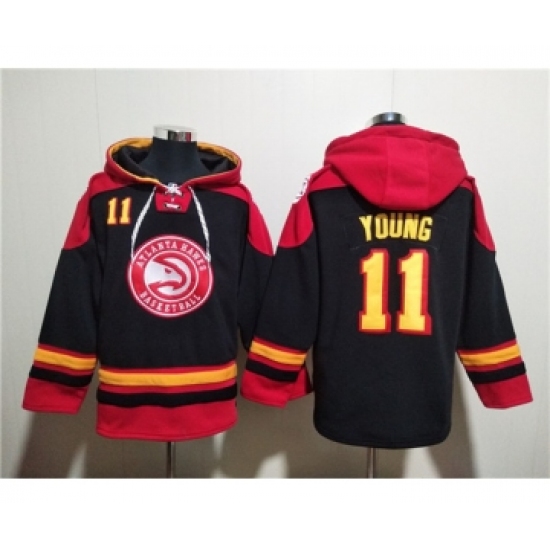 >Men's Atlanta Hawks #11 Trae Young Black Red Lace-Up Pullover Hoodie