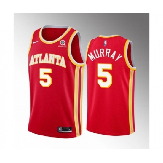 Men's Atlanta Hawks #5 Dejounte Murray Red Stitched Jersey