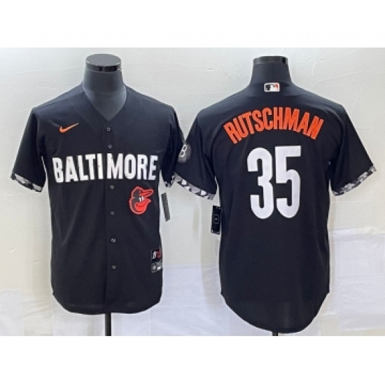 Men's Baltimore Orioles #35 Adley Rutschman Black 2023 City Connect Cool Base Stitched Jersey
