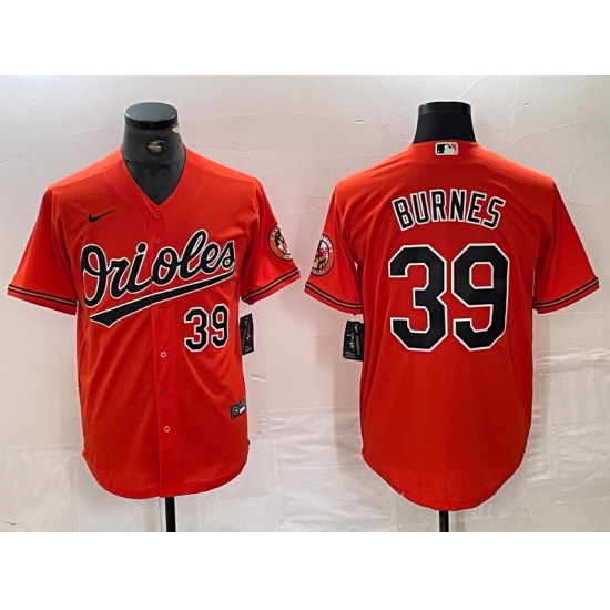 >Men's Baltimore Orioles #39 Corbin Burnes Number Orange Cool Base Stitched Jersey