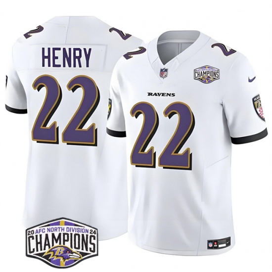 Men's Baltimore Ravens #22 Derrick Henry White F.U.S.E 2024 AFC North Division Champions Vapor Limited Football Jersey
