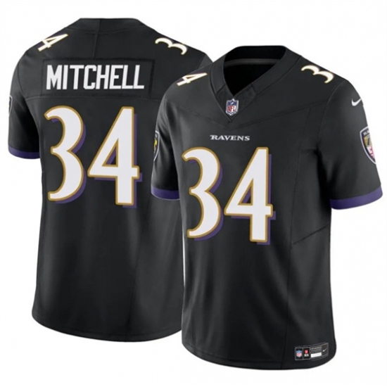 >Men's Baltimore Ravens #34 Keaton Mitchell Black 2025 F.U.S.E. Vapor Limited Football Jersey