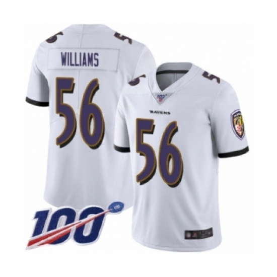 Men's Baltimore Ravens #56 Tim Williams White Vapor Untouchable Limited Player 100th Season Football Jersey