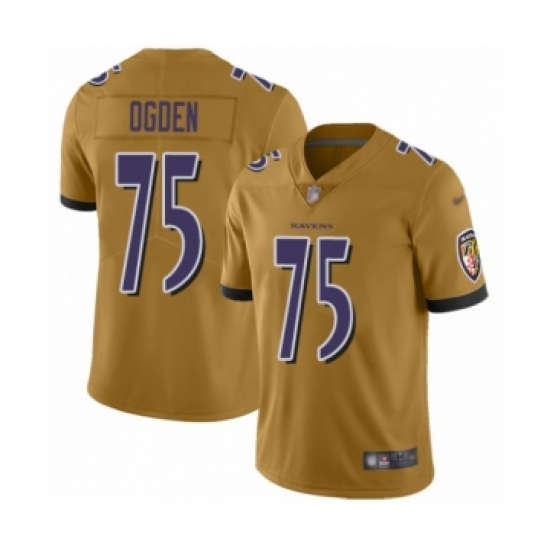 >Men's Baltimore Ravens #75 Jonathan Ogden Limited Gold Inverted Legend Football Jersey