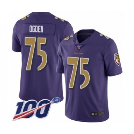 Men's Baltimore Ravens #75 Jonathan Ogden Limited Purple Rush Vapor Untouchable 100th Season Football Jersey