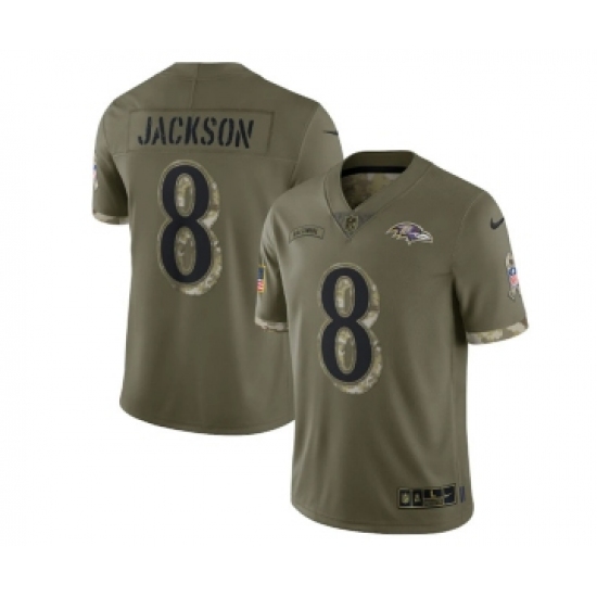 Men's Baltimore Ravens #8 Lamar Jackson 2022 Olive Salute To Service Limited Stitched Jersey