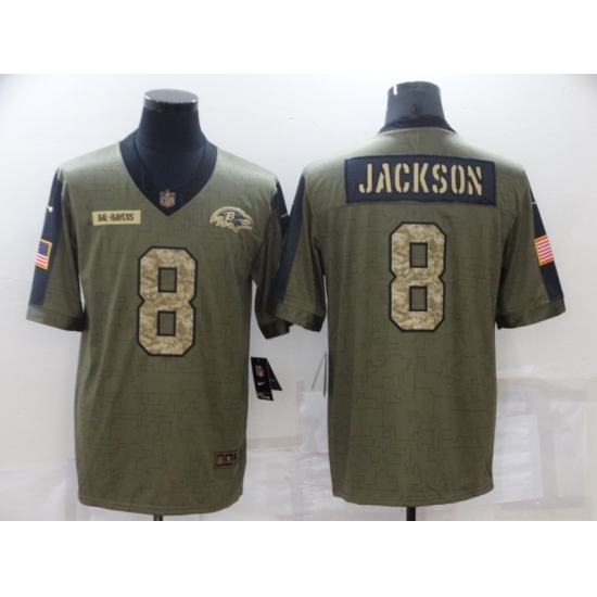 Men's Baltimore Ravens #8 Lamar Jackson Camo 2021 Salute To Service Limited Player Jersey