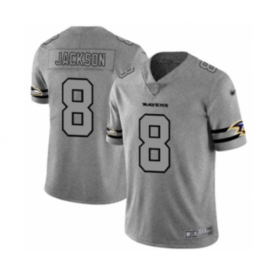Men's Baltimore Ravens #8 Lamar Jackson Limited Gray Team Logo Gridiron Football Jersey