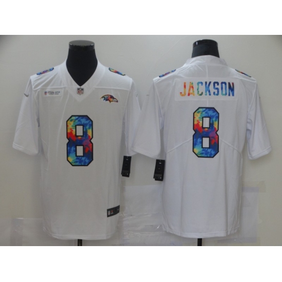 Men's Baltimore Ravens #8 Lamar Jackson White Rainbow Version Nike Limited Jersey