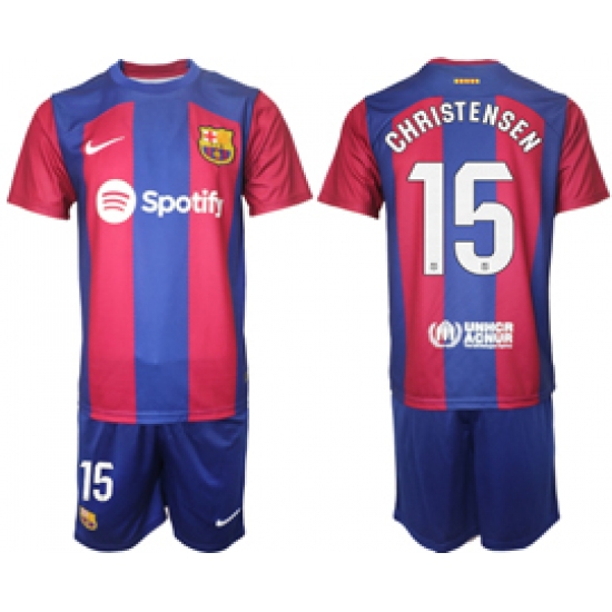 Men's Barcelona #15 Christensen Blue Red 2023-24 Home Soccer Jersey