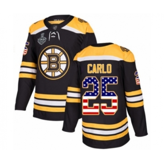 Men's Boston Bruins #25 Brandon Carlo Authentic Black USA Flag Fashion 2019 Stanley Cup Final Bound Hockey Jersey