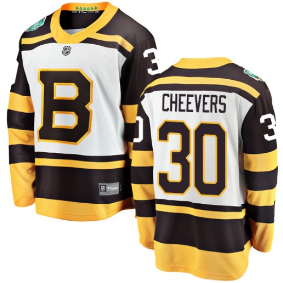 >Men's Boston Bruins #30 Gerry Cheevers White 2019 Winter Classic Fanatics Branded Breakaway NHL Jersey