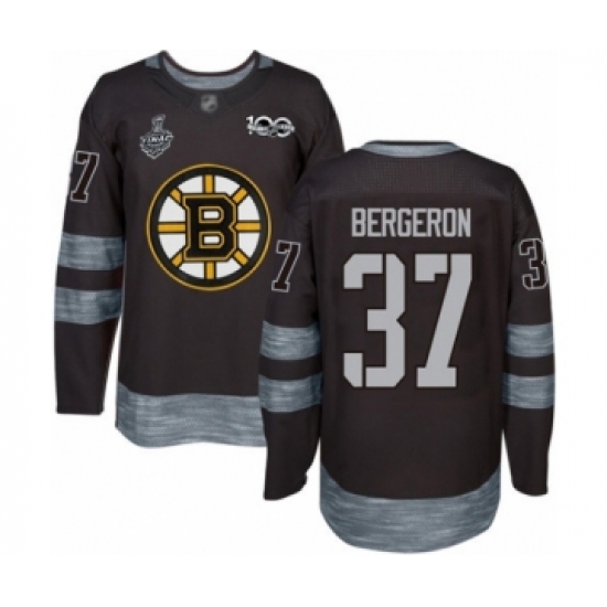Men's Boston Bruins #37 Patrice Bergeron Authentic Black 1917-2017 100th Anniversary 2019 Stanley Cup Final Bound Hockey Jersey