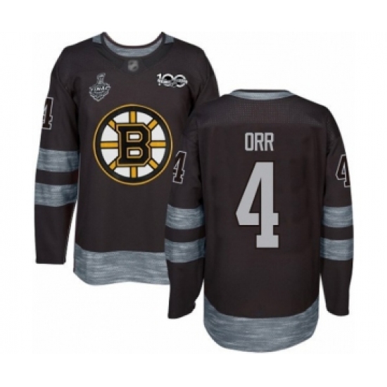 Men's Boston Bruins #4 Bobby Orr Authentic Black 1917-2017 100th Anniversary 2019 Stanley Cup Final Bound Hockey Jersey