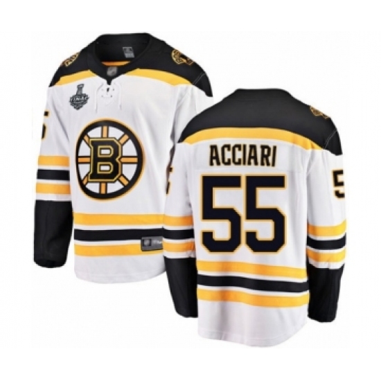 Men's Boston Bruins #55 Noel Acciari Authentic White Away Fanatics Branded Breakaway 2019 Stanley Cup Final Bound Hockey Jersey