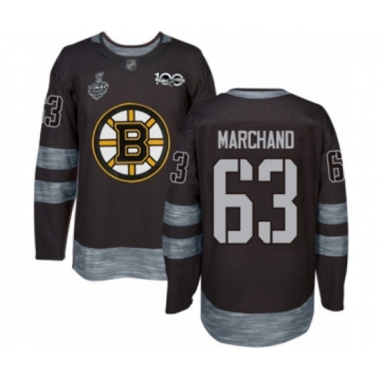 Men's Boston Bruins #63 Brad Marchand Authentic Black 1917-2017 100th Anniversary 2019 Stanley Cup Final Bound Hockey Jersey